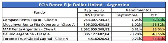 Durante el mes de septiembre, se observó una disminución en el ritmo de crecimiento de los patrimonios netos de este tipo de fondos Dólar Linked por una posible implementación de un desdoblamiento cambiario, como así lo indicó la calificadora de riesgo “FixScr” en un informe publicado sobre esta industria el 5 de octubre de 2020. Esto implicaría la existencia de dos tipos de cambio: el comercial (menor precio) destinado a las exportaciones e importaciones; y el financiero (mayor precio) para los ahorristas o gastos por turismo, afectando los rendimientos de dichos fondos ya que seguirían el de menor precio.