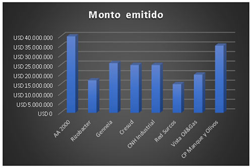 Durante agosto, se emitió un monto total de USD 173 millones. Se destaca la emisión de Aerolíneas Aeropuertos 2000 por un monto de USD 40 millones correspondiente a la Clase II y representa la de mayor financiamiento en moneda DL. Por otra parte, la empresa Manque, del sector energético, emitió la única obligación negociable verde que sigue criterios ambientales, sociales y de gobernanza.